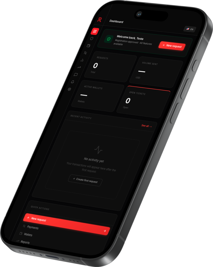 A camada de infraestrutura para operações transfronterizas. Orquestre sua tesouraria, automatize o compliance e conecte-se a múltiplos parceiros financeiros em uma única interface.